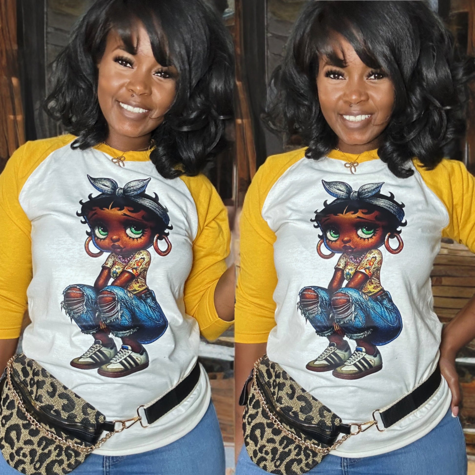 - Contrast color three-quarter sleeves